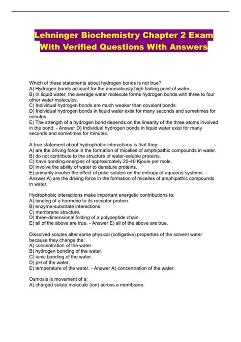 Read Online Lehninger Biochemistry Exam Answer And Questions Reader